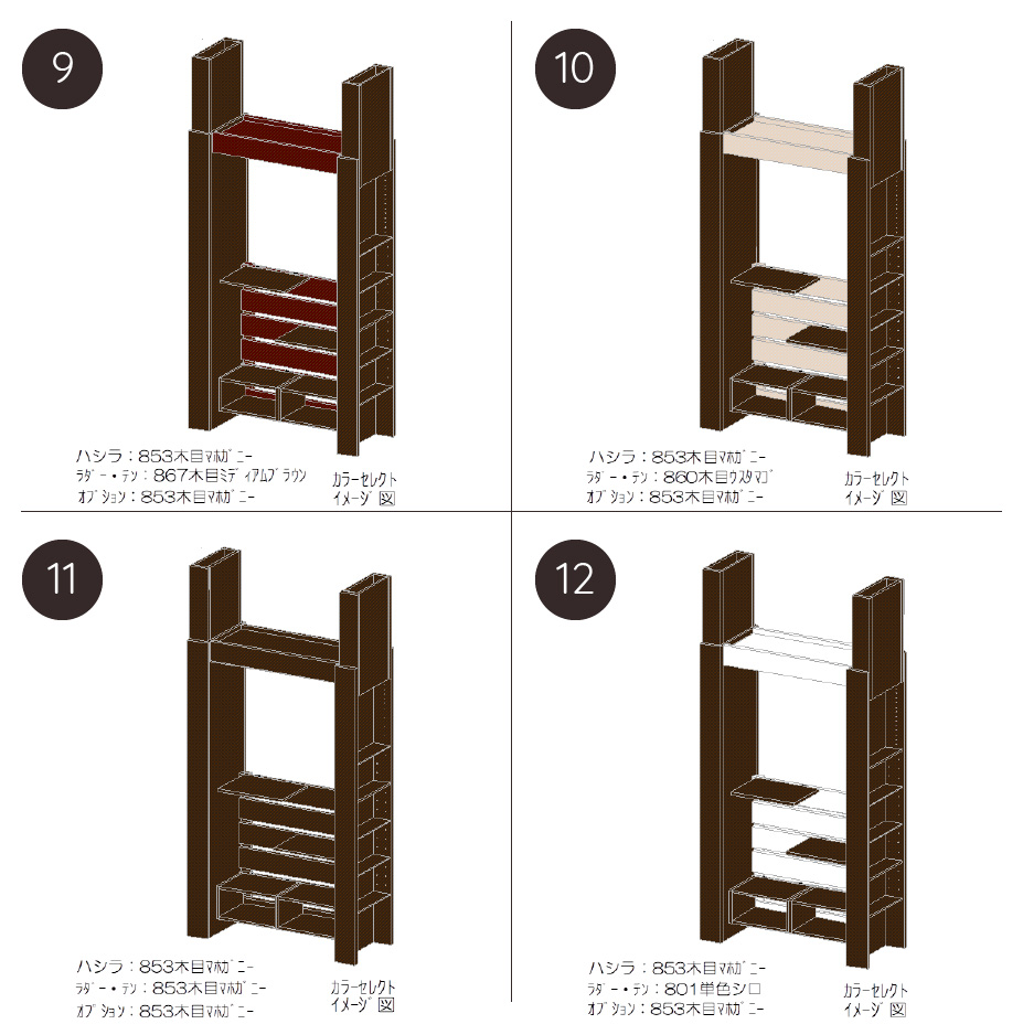 寝室用飾り棚 寝室用飾り棚 (0002) “自分だけの落ち着ける寝室を” ベッドが大半を占める寝室はインテリアに悩みますよね。 Walldecoを使えば簡単に自分の好みに部屋をアレンジすることが出来ます。 理想のインテリアを「Wall Deco」で実現しましょう! 【サイズ】 幅118cm × 奥行30cm × 高さ210cm~260cm 【セット内容】 柱/2本 スペーサー/2台 ラダー/2枚 棚板小/10枚 棚板/2枚 ボックス/2台 天板/1台 【カラー】 単色シロ色 木目ウスタマゴ色 木目ミディアムブラウン色 木目マホガニー色 種類 ①[ベース]木目ミディアムブラウン×[ラダー]木目ミディアムブラウン ②[ベース]木目ミディアムブラウン×[ラダー]木目ウスタマゴ ③[ベース]木目ミディアムブラウン×[ラダー]木目マホガニー ④[ベース]木目ミディアムブラウン×[ラダー]単色シロ ⑤[ベース]木目ウスタマゴ×[ラダー]木目ミディアムブラウン ⑥[ベース]木目ウスタマゴ×[ラダー]木目ウスタマゴ ⑦[ベース]木目ウスタマゴ×[ラダー]木目マホガニー ⑧[ベース]木目ウスタマゴ×[ラダー]単色シロ ⑨[ベース]木目マホガニー×[ラダー]木目ミディアムブラウン ⑩[ベース]木目マホガニー×[ラダー]木目ウスタマゴ ⑪[ベース]木目マホガニー×[ラダー]木目マホガニー ⑫[ベース]木目マホガニー×[ラダー]単色シロ ⑬[ベース]単色シロ×[ラダー]木目ミディアムブラウン ⑭[ベース]単色シロ×[ラダー]木目ウスタマゴ ⑮[ベース]単色シロ×[ラダー]木目マホガニー ⑯[ベース]単色シロ×[ラダー]単色シロ 在庫状態 : 在庫有り ¥191,810(税込) 数量